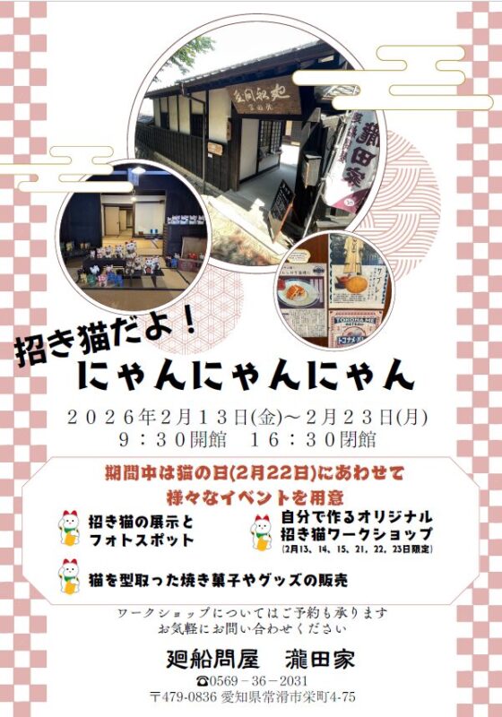 ・招き猫ワークショップ<絵付け体験>(2/13~15、2/21~23限定)